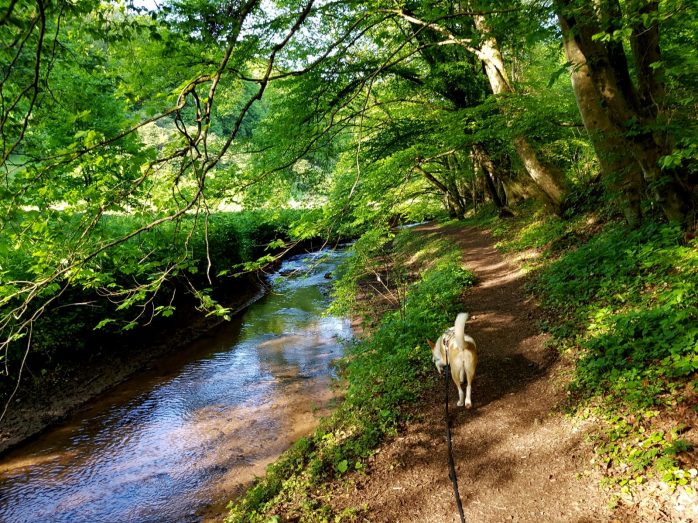 Mal wieder ne neue Traumschleife (oder ein Premiumrundwanderweg!): Laufen mit der süßen Cuba stand auf dem Plan … und es war so richtig heiß, so wollten wir nicht auf exponiertes Gelände, nein, Wald, Wiesen und Bäche mit vielen Möglichkeiten was zu trinken, das war unser Wunsch.