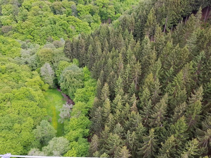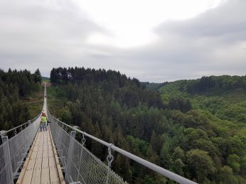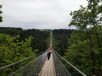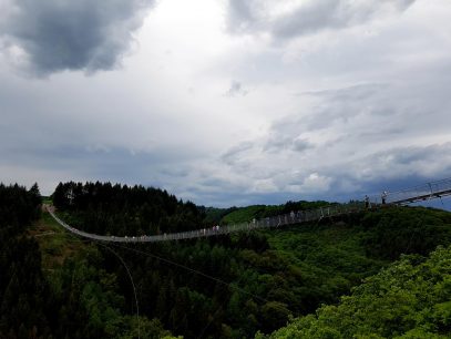 Mit 360m Länge und gut 100 Meter Höhe ein beeindruckendes Bauwerk mitten im grünen Dschungel 😉 … und mit diesen Eckdaten auch Deutschlands längste Hängeseilbrücke.