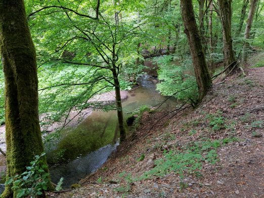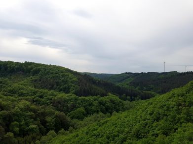 Also wenigstens mal ein kleines Ründchen drehen, ohne Zeitdruck, Natur und Aussicht aufnehmen. Da ich eh grade in der Nähe war, und Laufsachen für den den „Notfall“ immer im Kofferraum sind, ab dafür nach Mörsdorf. Ein kleiner Rundweg mit 5km ist ausgeschildert, bisschen mehr geht sowieso immer wenn man einfach mal ein paar Querfeldeinvarianten probiert. Und ich wurde belohnt. Den Rundweg kann man ausbauen, kleine Schleifen des Saarhundsrücksteiges absorbieren, und dann gabs noch einen „Forst“-Rundweg (das ist ein nahe gelegener Ort) um die Ecke… also mit knapp 20 km auf dem Tacho, circa 600 HM und 2 Brückenüberquerungen war es eine gelungene Solotour. Lockeres Tempo mit Zeit für den schönen Ausblick und einigen Fotos, nem langsamen Marsch über die Brücke & viel Rücksicht auf Wanderer, die sich mit Sonntags-Schuhwerk auf den Singletrails abmühten. So kam ich auf einen gediegenen 7:00er Schnitt, und wäre es nicht so schwül gewesen, hätte ich noch nicht einmal geschwitzt.