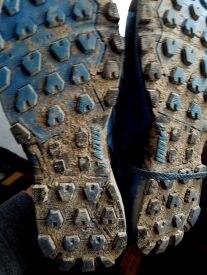 Beim 290er war ich so mutig, ihn auf die kompletten 120km vorm Lavaredo loszulassen. Was soll ich sagen? Ging gut. Da brauch ich über das Streckenprofil und den Untergrund nicht viele Worte verlieren, es war einfach anspruchsvoll. Und die Angst umzuknicken war stets vorhanden. Aber dem war nicht so – gut, ich bin gestürzt, aber das geht sicher nicht auf den Schuh 😀 … Selbst nach 100km schroffstem Gelände war die Dämpfung noch da und ich konnte selbst auf den letzten Kilometern ins Ziel über den Asphalt Vollgas geben. Keine Blase, nix wund, keine Beschwerden am Fuss, obwohl ich 3 mal nasse Füsse hatte (Wasserquerung etc.). Das ist ein Wort, das sagt etwas über den Schuh aus: Sie wurden schnell trocken und waren zu keiner Zeit unangenehm.