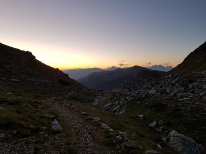 Ein gnadenloser Aufstieg von ca 1500 Metern. 5 km auf Asphalt-Serpentinen hoch, die letzten 3 km mit 500 Metern gings durch Gestrüpp mit lauter Löchern im Boden. Nix zu sehn, schwer zu gehn. Kein Weg erahnbar und langsam dämmerte es bereits. Die Markierungen vom Winde verweht. Ja der Wind. Die erste Nacht im Regen war ja noch harmlos gegen den Wind bei 3-5° C auf ca 2500m über Null. Der erste Läufer lag schon in eine Rettungsdecke gehüllt vor dem letzten Anstieg zum Penser Joch. Bergwacht unterwegs. Kacke. Also weiter an die Verpflegungsstation bei km 120. Umziehen. Alles Anziehen was dabei ist! Pulli, Windjacke, Goretex-Jacke, Thermo-Beinlinge, Handschuhe, Mütze, Buff. So verpacken dass nirgends Wind eindringen kann. Danke nochmals an Iris und Christian von der Landau Running Company fürs Aufwärmen im Auto und den herzlichen Empfang im Ziel! Also noch ne Suppe rein und ab in die Nacht. Irgendwas mit 20km zum nächsten VP. War jemand mal nachts bei völliger Dunkelheit in den Bergen? Bei eisigem Wind und in der 2ten Nacht ohne Schlaf?