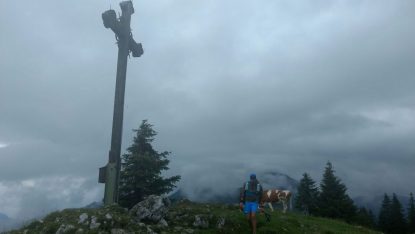 Aufstieg Seebergkopf, dann runter ins Tal. Kofferraum VP. Butterbrezeln und RedBull … und Cola … mit soviel Zucker im Blut gings frisch gepudert hoch auf den Wendelstein. Wie der erste Anstieg auf kurzer Distanz gut 1000 HM … jedoch ein Spaziergang im Vergleich zum ersten „Gekraxel“. Locker bergab durch die wunderschönen Täler … bis zum … tadaa … nächstem Berg … dem Breitenstein. Das war eigentlich der letzte Gipfel … da aber in Wurfweite ein weiteres Kreuz stand, na ja … Tim und ich waren uns schnell einig das auch noch zu erobern … 7 summits klingt um einiges besser 😀 …