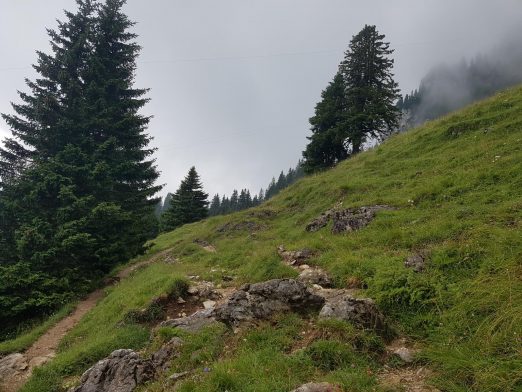 Ich will nun auch keinen Roman draus machen. Das Ding ruft nach einer Wiederholung, dann aber flotten Fusses, dieses Wochenende wartet der Großglockner auf mich, da darf man sich vorher nicht zu sehr verheizen. Der erste Anstieg zur Aiplspitz bei leichtem Regen und noch kühlen Temperaturen war echt schwierig. Man brauchte doch tatsächlich beide Hände zum kraxeln.