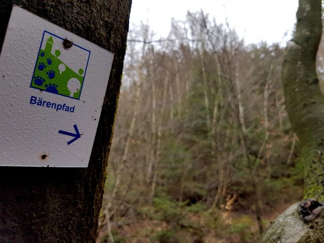 Zurück auf den Pfad. Die Traumschleife Bärenpfad sollte es sein, knapp 11km mit 440hm, im schönen Saarland direkt an der Grenze zu Rheinland-Pfalz gelegen. Bei den milden Temperaturen war die dünne Jacke „Windrunner“ von Helikon-Tex ein guter Begleiter, die vorderen Taschen erlauben auch das Mitnehmen von Leckerlis und besagten braunen Beutelchen.