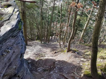 Ich muss zugeben dass ich recht platt war, und ich hab fast 1:40 gebraucht, um die Strecke abzulaufen. Aber, wie gesagt, insgesamt ist die Strecke sehr technisch und es gibt viele Singletrails … und ne Menge umgestürzte Bäume um die man nicht so ganz ohne rum kommt. Und Fotos müssen gemacht werden 😉 … und wenn es einen Aussichtsturm gibt wo man hoch kann, ja dann müssen die Treppen auch noch sein 😉 … soll ja Spaß machen. Ich kann die Tour jedem ans Herz legen … ob wandernd oder laufend, hier werden ein paar Körner abverlangt. Beim Start dachte ich noch dass der 305er Roclite etwas überdimensioniert ist, aber ich war sehr dankbar einen stabilen Schuh getragen zu haben. Die Strecke ist TOP! Ab sofort meine zweit liebste Route hier in der Nähe. Ich bin nun circa 60km mit dem Inov8 gelaufen, wir verstehen uns immer besser …